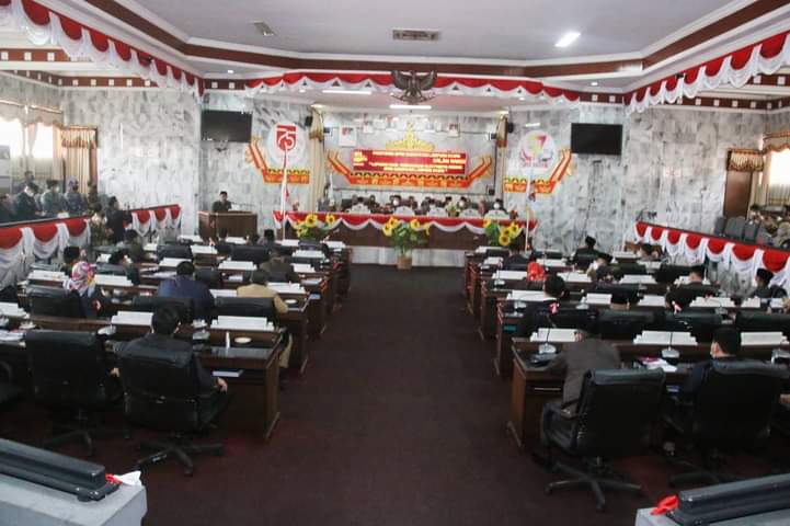 Lampung Utara, Nusantarapos – Mewakili Bupati Kabupaten Lampung Utara (Lampura). Asisten I Pemerintahan dan Kesra, Mankodri, hari ini menghadiri Paripurna DPRD Lampura dalam agenda pembahasan laporan keterangan pertanggung jawaban (LKPJ) Bupati Tahun Anggaran 2020, Jumat (30/4/2021).
