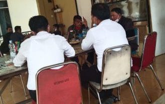 Sambil menikmati secangkir kopi, Wabup ngobrol dengan beberapa masyarakat dan beberapa anggota dari Polres Tanjab Barat yang sama-sama sedang menikmati kopi menjelang rapat kembali di buka.