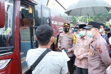 “Saya kira ini adalah merupakan pintu masuk yang sangat vital, karna jalurnya mudah dilalui. Ini terbukti pada siang ini ada 1 mobil bus yang lewat dengan membawa sekitar 6 penumpang dan mereka akan pergi kejambi dan Palembang. Oleh karena itu, saya kira ini akan kita tegakkan sesuai dengan aturan yang berlaku bus yang lewat, yang masuk pada tanggal 6 dan seterusnya itu akan kita kembalikan ke tempat asal bus berangkat” ujar Bupati.