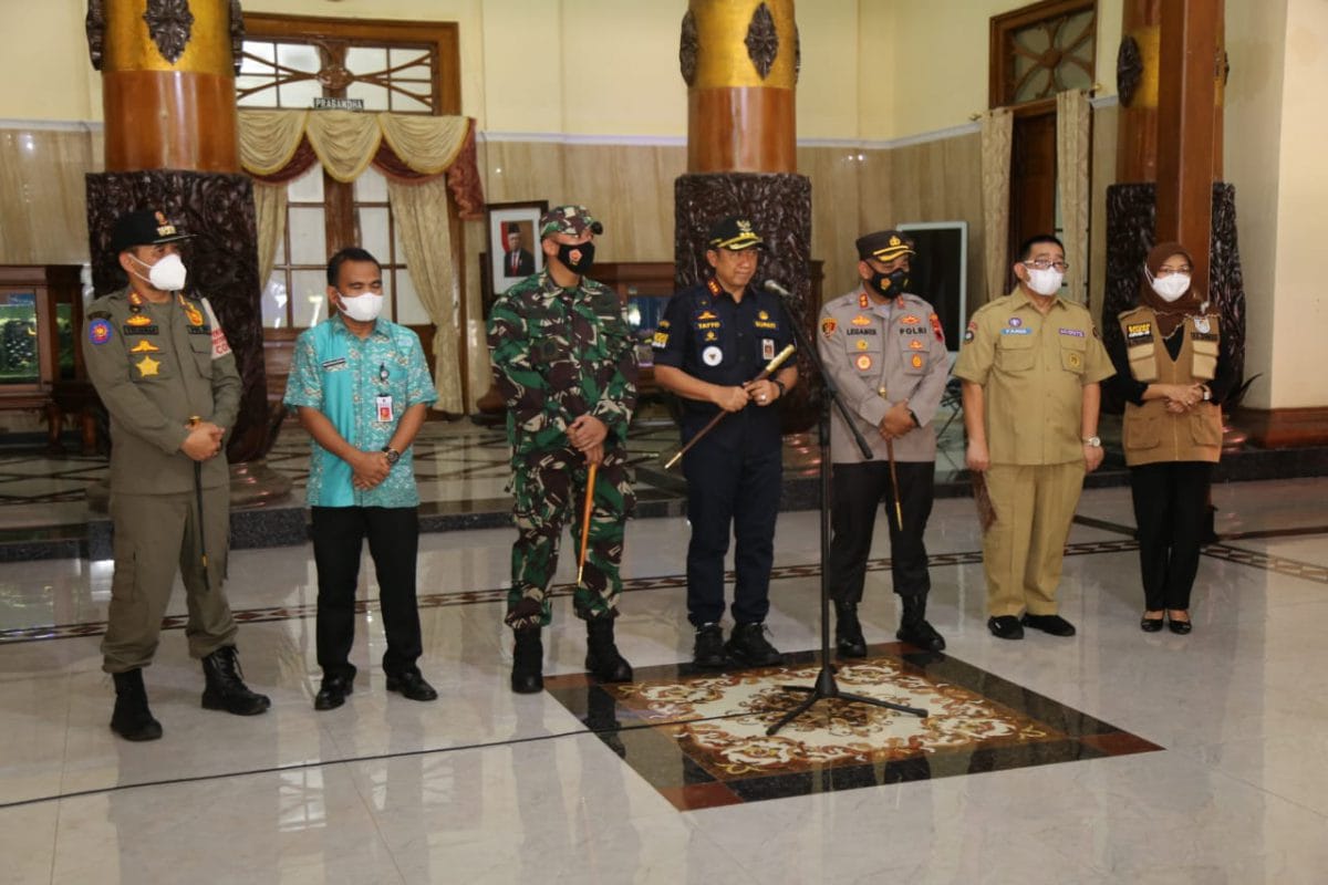 Cilacap, NusantaraPos – Bupati Cilacap Tatto Suwarto Pamuji didampingi unsur Forkopimda Kabupaten Cilacap dan Kepala Dinas Kesehatan, serta Direktur RSUD Kabupaten Cilacap, memberikan penjelasan kepada awak media terkait Penanganan Kasus Covid 19 Varian lndia yang menimpa 13 ABK Filipina yang saat ini di rawat di RSUD Kabupaten Cilacap.