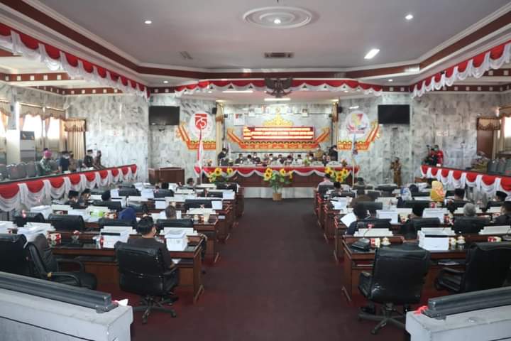 Lampung Utara, Nusantarapos – Bupati Lampung Utara (Lampura), H. Budi Utomo menghadiri rapat paripurna DPRD dalam agenda pembahasan penyampaian Rancangan Awal Rencana Pembangunan Jangka Menengah Daerah (RPJMD) Perubahan Tahun 2019 – 2024 di Ruang Sidang DPRD setempat, Senin (7/6/2021)