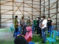 KAPUAS – Babinsa Koramil 05/Pulpet Koptu M. Sidiq mendampingi petugas Puskesmas yang melaksanakan vaksinasi Covid-19 di Des. Banama, Kec. Pulau Petak, Kab. Kapuas, Jumat (11/06/2021).