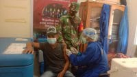 “Vaksin Covid-19 ini aman dan halal, selama ini belum ada laporan tentang adanya kejadian pasca imunisasi jadi saya berharap warga yang akan menerima Vaksinasi ini agar bersikap tenang. Efek samping dari Vaksinasi ini biasanya hanya sedikit mengantuk dan perasaan lapar saja karena saya sudah di vaksinasi jadi saya sudah merasakannya” ujar Serda Heijaz..