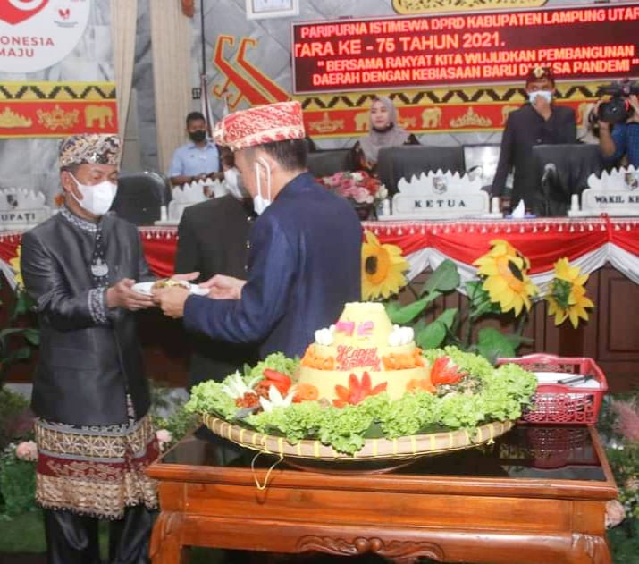 Lampung Utara, Nusantarapos – DPRD bersama Pemkab Lampung Utara (Lampura) menggelar Paripurna Istimewa HUT Kabupaten Lampung Utara ke-75 di Gedung DPRD setempat, Selasa (15/6/2021).