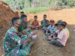 Prada Andi Lagita memberikan sosialisasi Prokes kepda Anak Desa Siuhom