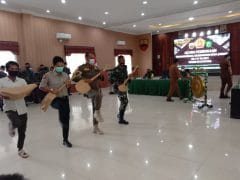 Yang merarik perhatian adanya 4 petugas yang masing-masing membawa secara simbolis peralatan TMMD ke-111 Kodim 0212/TS denga