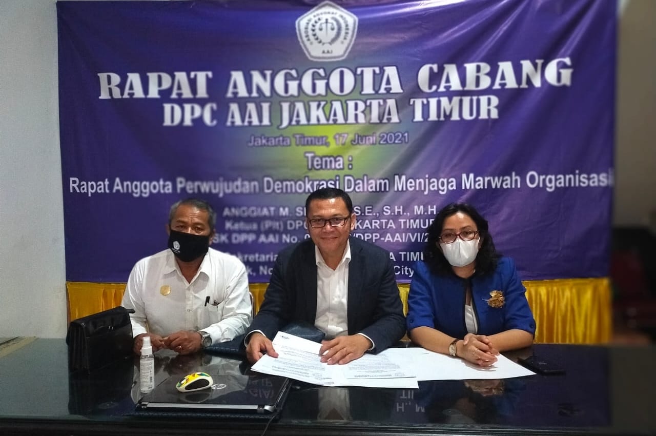 Jakarta, NUSANTARAPOS.CO.ID – Dianggap tak memiliki legal standing, DPC AAI Jakarta Timur menyatakan ketua terpilih dalam Musyawarah Cabang Luar Biasa (Muscablub) di hotel 678 tidak sah (inkonstitusional). Demikian disampaikan Plt. Ketua DPC AAI Jakarta Timur Anggiat Sinurat yang didampingi Friska Siregar dan Sirjoni Simangunsong sebagai pimpinan sidang Rapat Anggota Cabang (RAC) di Jakarta Timur, Kamis, (17/6/2021) sore.