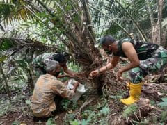 Hari ketiga TMMD ke 111 Kodim 0212/TS, dengan hati senang Serda Tomi Jepisa sebagai Satgas TMMD ke 111, panen panen Buah Salak , Kamis (17/6/2021).