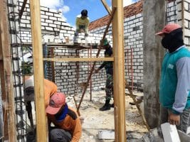 Mereka merasa senang bisa ikut membantu anggota Satuan Tugas (Satgas) TMMD menyelesaikan pekerjaan pembangunan pengecoran jalan dan rehap RTLH.