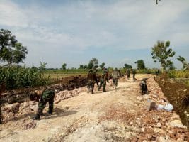 Semua orang begitu serius dengan pekerjaannya masing masing, ada yang memasang batu bata, ada yang membuat adukan, dan ada juga yang menyediakan batu bata yang akan dipasang, semua terbingkai dalam rangkaian kegiatan bedah Rumah Tidak Layak Huni (RTLH) TMMD Ke 111 Kodim 0817/Gresik, Sabtu (19/6/2021).