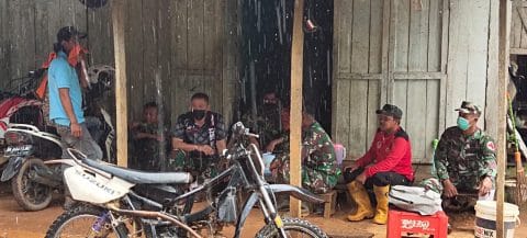 Tapak telihat Kepala Staf Kodim (Kasdim) 1009/Pelaihari Mayor Inf Anton Mahriadi S.Sos., yang juga Wakil Komandan Satuan Tugas (Wadan Satgas) dalam TMMD ke-111 ini, beserta beberapa personel lainnya, berteduh disalah satu rumah warga milik Bapak Ali (50) tahun, yang kebetulan dekat dengan lokasi anggota bekerja, menunggu hujan reda, untuk melanjutkan kegiatan.