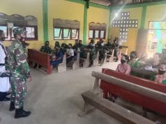 Hari Kedelapan Satgas TMMD ke 111 Kodim 0212/TS, bertempat di Gereja GBPK di Dusun Tangga Batu, Desa Siuhom, Kec.Angkola Barat, Kab.Tapsel, Serma L Damanik , Senin (21/6/2021), mengatakan Jemaat Gereja GKPA mendengarkan khotbah dari Pak Pendeta.