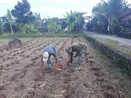 Gresik,- Sudah memasuki musim tanam, Anggota satgas TNI Manunggal Membangun Desa (TMMD) ke 111, Kodim 0817/Gresik membantu memasukkan jagung ke dalam lubang untuk ditanam, Selsa (22/6/2021).
