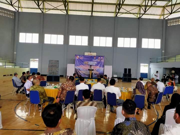 Lampung Utara, Nusantarapos – Bupati Kabupaten Lampung Utara (Lampura) Budi Utomo menghadiri pelantikan pengurus DPC Asosiasi Pelaksana Kontruksi Nasional (Aspeknas) Lampura di GOR Sukung, Kotabumi kabupaten setempat, Rabu (23/6/2021).