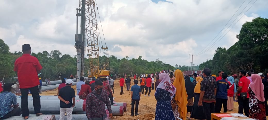 Pelalawan, Nusantarapos- Bupati Pelalawan H. Zukri Misran hadiri peletakan tiang pancang pertama pembangunan Jembatan Tambak-Sotol di Kecamatan Langgam, tepatnya di Desa Tambak pada Kamis, 24 Juni 2021.