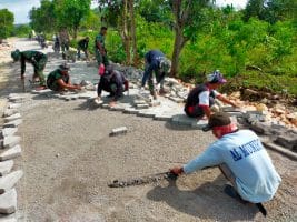 Gresik,- Semangat dan giat berkarya satgas TMMD dengan warga Desa Siwalan terlihat saat pelaksanaan pekerjaan pembangunan Jalan baru .TNI Manunggal Membangun Desa Ke 111 Kodim 0817/Gresik telah membawa perubahan besar bagi masyarakat dipelosok maupun daerah tertinggal.