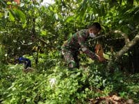 Hari kelima belas, Satgas TMMD ke 111 Kodim 0212/TS, bertempat di lahan kebun coklat Bu Rika Pangaben di Desa Siuhom, Kec. Angkola Barat, Kab.Tapsel, Prada Adanan Rangkuti, Selasa (29/6/2021), mengatakan produksinya maksimal, Satgas bersihkan gulma di sekitar tanaman coklat kebun Bu Rika Pangaben di TMMD Kodim Tapsel (*)