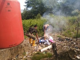 “Kumpulan sampah itu berserakan, sehingga membuat ketidaknyamanan bagi siapa saja melihatnya. Terutama kami yang sedang mengerjakan pembangunan jembatan Desa tersebut” ucap Serda Alpon, anggota Satgas TMMD.