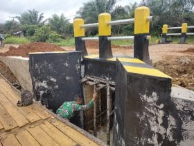 “Agar kelihatan bersih dan tidak kumuh, kami membersihkan kayu dan sisa-sisa paku yang sudah tidak terpakai dibuang di samping jembatan agar jembatan kelihatan bersih dan enak dipandang walaupun seutuhnya belum jadi,” Ucap Anggota Satgas TMMD 111/Kodim 1202 Singkawang, Serda Dhika.