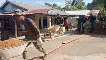 Semangat Gotong Royong Satgas Angkat Pasir Dengan Dorong Arco