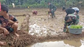 Hal inilah yang menambah suasana yang akrab sehingga lahan padi kelihatan asri karena tiap hari tidak sepi dari Satgas dan warga yang ikut gotong royong tanam Padi sukseskan ketahanan pangan warga. (*)
