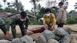 Giat langsir batu untuk bangun penahan tebing jalan baru di TMMD Kodim Tapsel, dengan gotong-royong akan membuat pekerjaan menjadi ringan. Sehingga capaian pekerjaan akan maksimal, “ jelas Prada Parlin Saputra Harahap, Kamis (1/7/2021).