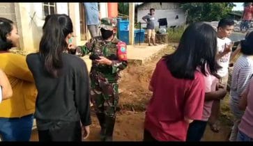 Bengkayang – Dengan Kepedulian Kesehatan Menekan Penyebaran Covid 19, Pasiter Kodim 1202/Singkawang Kapten Inf Sarmin bersama Babinsa dan anggota satgas tmmd regtas ke 111 ta. 2021 Jajaran Kodim 1202/Singkawang Di Desa Setangau Jaya Kecamatan Seluas Kabupaten Bengkayang Provinsi Kalimantan Barat membagikan masker dan Mengingatkan Kembali bahaya Covid 19 yang sangat mengganggu kesehatan serta mengupayakan warga terbiasa agar menggunakan masker.