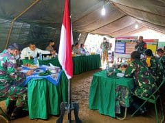 Dansatgas TMMD ke 111 Kodim 0212/TS menyampaikan paparan tentang pelaksanaan TMMD Kodim Tapsel, kepada Tim Masev Mayjen TNI Eka Wiharsa di Kotis TMMD Desa Siuhom, Kec. Angkola Barat, Kab Tapsel, Letkol Inf Rooy Chandra Sihombing, S.I.P , Jum’at (2/7/2021) mengatakan kegiatan pemaparan yang dilaksanakan di Kotis TMMD Kodim Tapsel, jalankan Prokes.