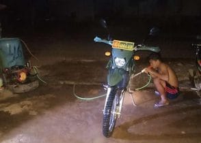 “Setelah pengerjaan sasaran fisik, kami selalu rutin dalam membersihkan sepeda motor” ujar Serda Andika anggota Satgas TMMD