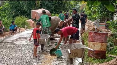 Bengkayang – Sebagai seorang TNI harus selalu menjalin keakraban dengan masyarakat dimanapun mereka berada. Seperti yang dilakukan Serda Dhika Arminia salah satu Anggota Satgas TMMD ke-111 Kodim 1202/Skw ikut memindahkan batu kerikil bersama anak-anak di Desa Sentangau Jaya, Kecamatan Seluas, Kabupaten Bengkayang.