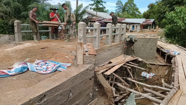 “Ada tiga jembatan yang dibangun melalui kegiatan fisik TMMD. Satu jembatan sudah selesai, satunya masih dalam proses pengerjaan dan Ini jembatan ketiga yang masih pada tahap pengerjaan. Sejauh ini pengerjaan sudah pada finishing jembatan.