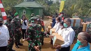 Ketua Tim Wasev TMMD ke 111 Kodim 0212/TS yaitu Asops Kasad Mayjen TNI Eka Wiharsa, Jum’at (2/7/2021) memberikan bantuan sembako ke warga dilandasi rasa kepedulian kepada warga yang kurang mampu.