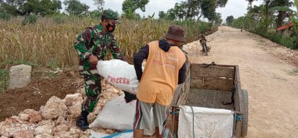 Gresik,- Selain melaksanakan pengerjaan pembangunan jalan dan Rehap RTLH serta pembuatan Tanggul Penahan Tanah (TPT) Sungai Tretek, Satgas TMMD ke-111 Kodim 0817/Gresik, di Desa Siwalan, Kecamatan Panceng, Kabupaten Gresik. Satgas juga memberikan sosialisasi kepada petani untuk mencoba menggunakan bios 44 sebagai pengganti pupuk tanaman untuk meningkatkan produksi pertanian tanaman jagung, Sabtu (3/7/2021).