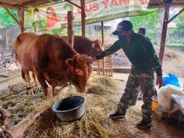 Banyak cara untuk mendekatkan diri dengan masyarakat, seperti yang dilakukan anggota satgas TMMD ke-111 Kodim 0817/Gresik, Koptu Agus berkunjung ke lokasi peternak sapi milik bapak Mudi.