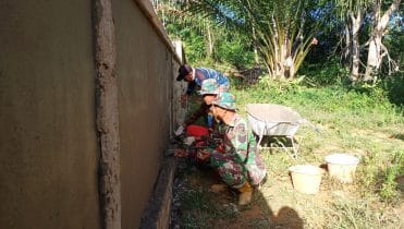 Bengkayang – program sasaran utama TNI Manunggal Membangun Desa (TMMD) ke-111 Kodim 1202/Skw yang terpusat di Desa Sentangau Jaya, Kecamatan Seluas, dilakukan oleh Satgas TMMD dibantu masyarakat Desa Sentangau, bersama-sama mengerjakan pemelesteran dinding pagar Gereja ST Kristoforus.