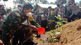 Ketua Tim Wasev TMMD ke 111 Kodim 0212/TS yaitu bersama Forkopimda Tapsel berkunjung ke titik nol lokasi pelaksanaan TMMD serta penanaman pohon bertempat di Desa Siuhom Kec Angkola Barat, Kab Tapanuli Selatan, Asops Kasad Mayjen TNI Eka Wiharsa, Jum’at (2/7/2021) mengatakan tanam pohon di titik nol jalan baru TMMD Kodim Tapsel sambil sosialisasikan gerakan penghijauan.