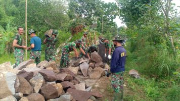Gresik – Suasana gotong royong antara satgas dan TNI begitu kompak saat mengerjakan Infrastruktur perabatan jalan di Desa Siwalan Kecamatan Panceng kabupaten Gresik, Sabtu (04/07/2021).