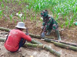 Adalah Sertu Heriyadi, anggota Satgas TMMD yang di tengah kesibukannya dalam mengerjakan kegiatan program TMMD Reguler Ke-111 Desa Siwalan, menyempatkan diri untuk membantu petani yang sedang membuat gubuk di sawah.
