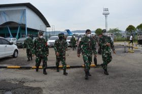 Dandim 0212/TS bersama Danrem 023/KS Kolonel Inf Febriel Buyung Sikumbang dan Kapoksahli Dam I/BB Brigjen TNI Junaedi sambut kedatangan Tim Wasev TNI AD Mayjen Eka Wiharsa di Bandara Dr.Ferdinand Lumban Tobing, Sibolga Tapanuli Tengah.
