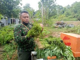 Bengkayang – Dalam upaya memelihara dan meningkatkan semangat kebersamaan, Satgas TMMD Regtas ke 111 Kodim 1202/Skw membantu panen sayur kangkung pada salah satu kebun milik petani di Dusun Trimulya Desa Sentangau Jaya Jalan Trans Segorong Kecamatan Seluas Kabupaten Bengkayang .