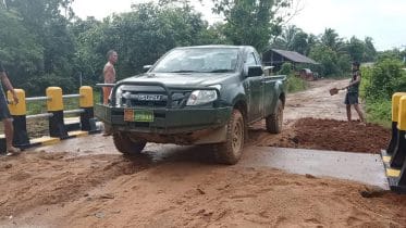 Ia mengatakan, jalan di desa sudah bisa di lalui kendaraan roda empat, warga membawa hasil perkebunannya menggunakan kendaraan roda empat di jalan tersebut.