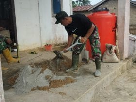 Bengkayang – Satgas Tentara Manunggal membangun Desa (TMMD) 111 Kodim 1202/Singkawang pembuatan adonan semen dengan cara manual untuk plester pagar gereja katolik Santo Kristoforus yang berada di Desa Sentangau Jaya, Kecamatan Seluas, Kabupaten Bengkayang.