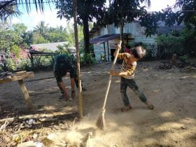 Bengkayang – Personel Satgas TMMD ke-111 Kodim 1202/Skw membersihkan rumah warga yang di halaman dan jalan dan pekarangan rumah di lokasi TMMD. Kali ini dilaksanakan di Desa Sentangau Jaya, Kecamatan Seluas, Kabupaten Bengkayang.