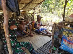 Bengkayang – Di tengah lelah bertugas, Satgas Tentara Manunggal Masuk Desa (TMMD) menyempatkan sejenak beristirahat di gubuk milik warga. Ya, meski di tengah pandemi Covid-19, para tentara tetap menjalankan program TMMD dengan melaksanakan pengecoran jalan di Dusun Trimulya Desa Sentangau Jaya Jalan Trans Segorong Kecamatan Seluas Kabupaten Bengkayang.