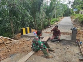 “Untuk menjalin ikatan kekeluargaan dan keakraban dengan masyarakat terlihat anggota TNI dan warga sambil menikmati jembatan baru,” ujar Pasi Ter Kapten Inf Sarmin.