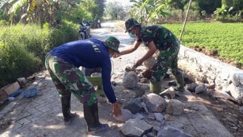 Gresik – TNI Manunggal Membangun Desa (TMMD) Reguler 111 Kodim 0817/Gresik terus berpacu dengan waktu untuk menyelesaikan Pekerjaan Pembangunan Tanggul Pembatas Tanah (TPT) Sungai Tretek di Desa Siwalan.