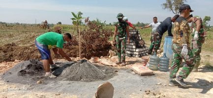 Serda Alexander bersama anggota Satgas TMMD yang lain siang ini melaksanakan pemasangan batu prasasti tersebut.