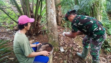 Bengkayang – Disela mengerjakan pemmembangun, anggota satgas TMMD ke-111 Kodim 1202/skw menyempatkan diri membantu warga menoreh karet milik kebun pribadi warga desa setangau jaya kec seluas kab bengkayang.