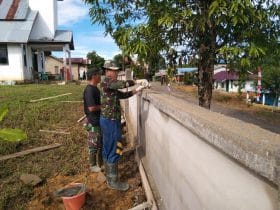 Pagar gereja adalah sasaran yang diprogramkan dalam TMMD kali ini dari beberapa sasaran yang sudah ditargetkan untuk dikerjakan secara beraama.