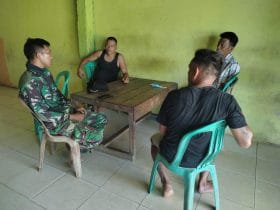 Kegiatan Komsos Anggota Satgas TMMD Ke-111 Kodim 1202/Skw Dengan Warga Dusun Trimulya